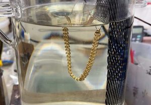Next, remove the jewelry and place it in a separate container; add nitric acid once again and apply heat to dissolve and extract the tin-bismuth alloy contained within the jewelry.