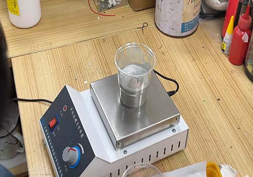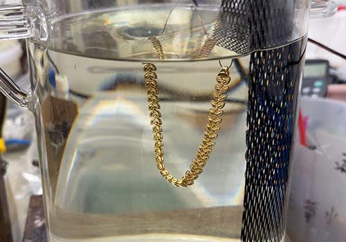Add the wax-removal solution and heat it to a boil to dissolve the wax embedded within the 24k jewelry.