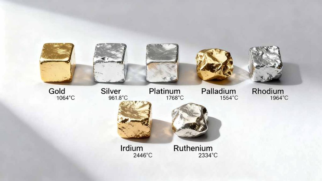 Limitations: Heat efficiency is only 30–40%, and maximum temperatures usually stay below 1800℃, making it unsuitable for high-melting-point platinum-group metals like rhodium (1966℃) or iridium (2443℃).